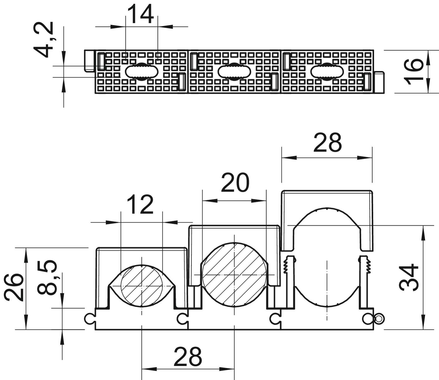 Descrição do produtoAbraçadeira universal para a fixação individual de cabos e tubos, todos os tamanhos podem ser combinados entre si, base com furo oblongo e rosca M6 para ajuste na fixação.
