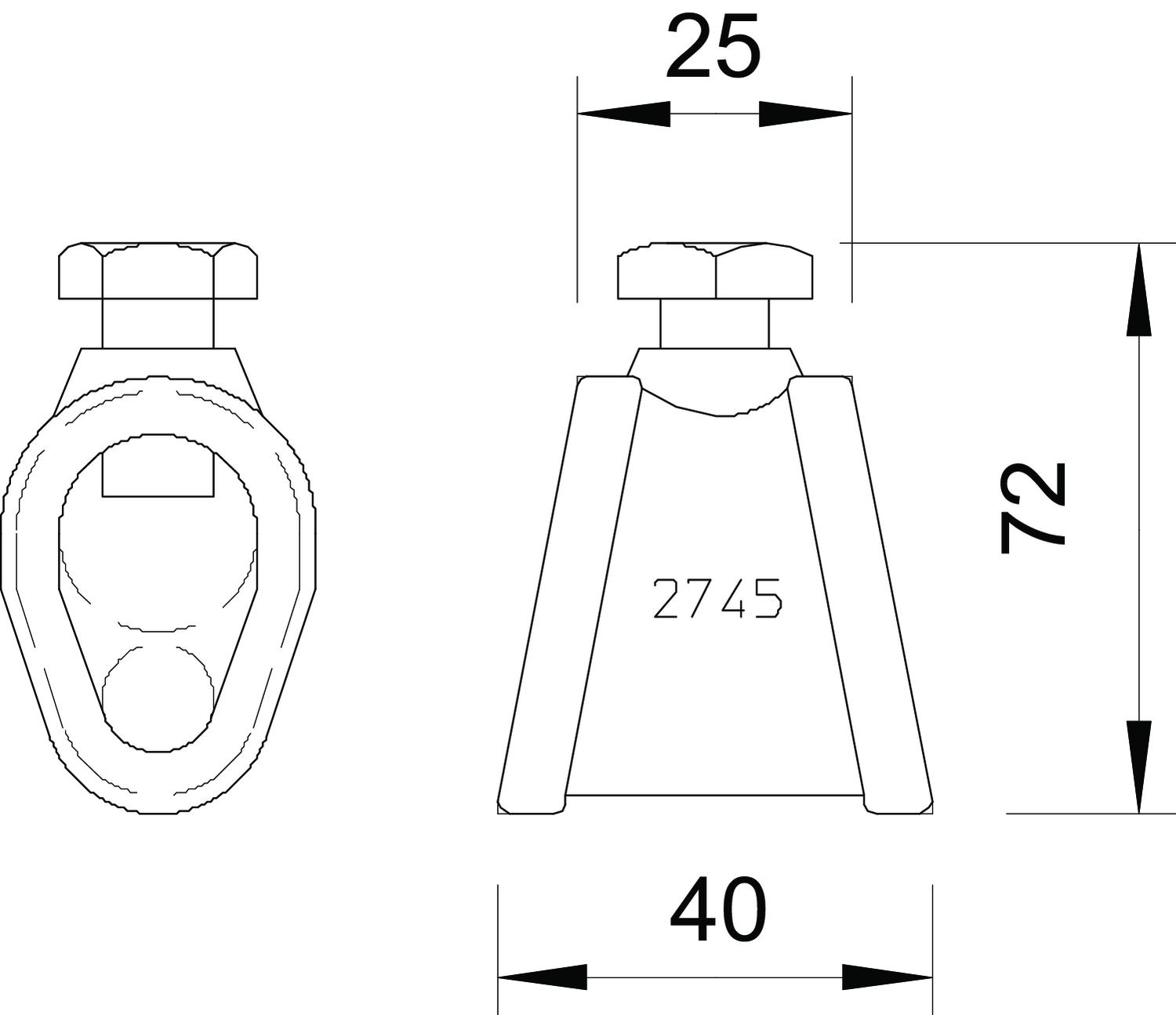 • para ligações de condutores redondos Rd 7-12,5 com parafusos sextavados M10 x 25