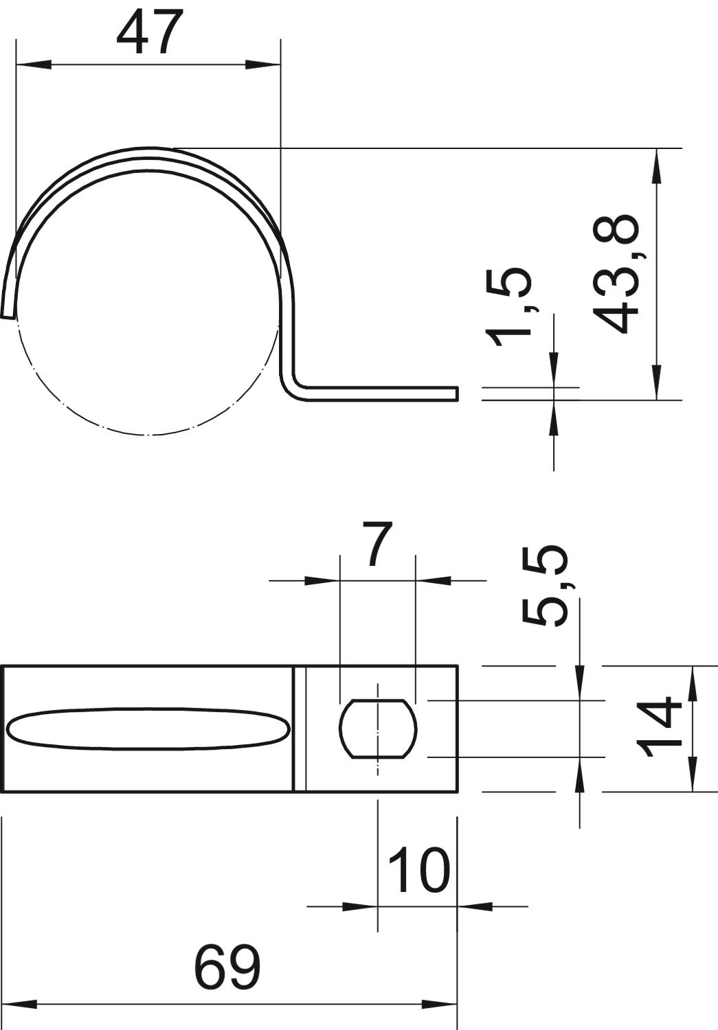 Altura 43,8 mm Apropriado para área de proteção contra incêndios não Comprimento 69 mm Diâmetro nominal 47 mm Dimensão 47mm Dimensão do furo 5,5 x 7 mm Distância à parede não Espessura do material 1,5 mm Largura 14 mm Livre de halogéneos sim Material Aço Medida A 10 mm Medida b 14 mm Medida d 5,5 mm Medida D 47 mm Medida e 7 mm Medida H 43,8 mm Medida L 69 mm Medida t 1,5 mm Número de cabos/tubos 1 para diâmetro 47 Pegada de CO2 (GWP) do berço ao portão 0,0433 kg CO2e / 1 Peça Resistente à radiação UV sim Revestimento plástico não Superfície eletrogalvanizado Tipo de fixação Orifício roscado Versão uma patilha - Todos os tipos