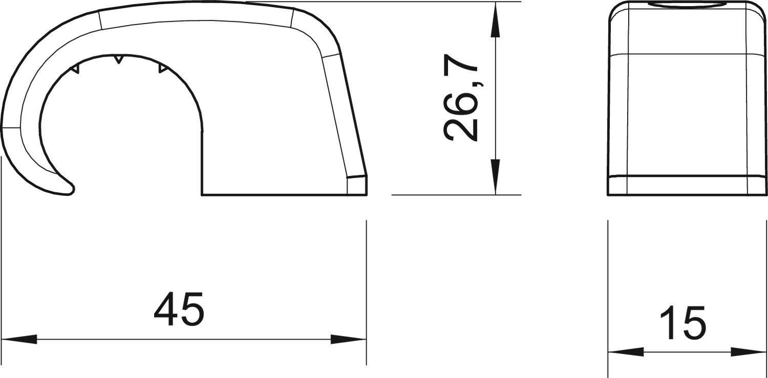 Abraçadeira dupla não Com prego não Cor cinzento claro; RAL 7035 Dimensão 21-25mm Dispositivo de bloqueio do tubo não Endurecido não Forma redondo (para condutor redondo) Livre de halogéneos sim Material Polipropileno Medida B 15 mm Medida H 26,7 mm Medida H1 45 mm Medida L 45 mm para diâmetro de cabo máx. 25 mm para diâmetro de cabo mín. 21 mm para diâmetro de prego 2 Pegada de CO2 (GWP) do berço ao portão 0,0182 kg CO2e / 1 Peça Resistente sim - Todos os tipos