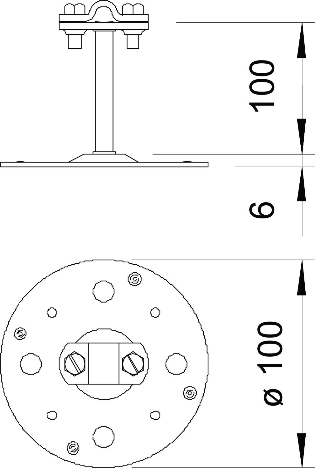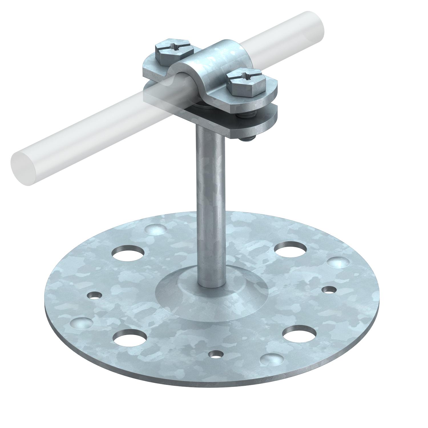 Ajuste Rd 8-10 mm Altura de montagem 100 mm Aplicação Telhado plano Comprimento 100 mm Diâmetro do condutor máx. 10 Diâmetro do condutor mín. 8 Dimensão 100mm Material Aço Medida H 100 mm Pegada de CO2 (GWP) do berço ao portão 0,574 kg CO2e / 1 Peça Superfície Galvanizado por imersão a quente após maquinação Tipo de fixação do condutor com abraçadeira de aparafusar Tipo de montagem adesivo - Todos os tipos