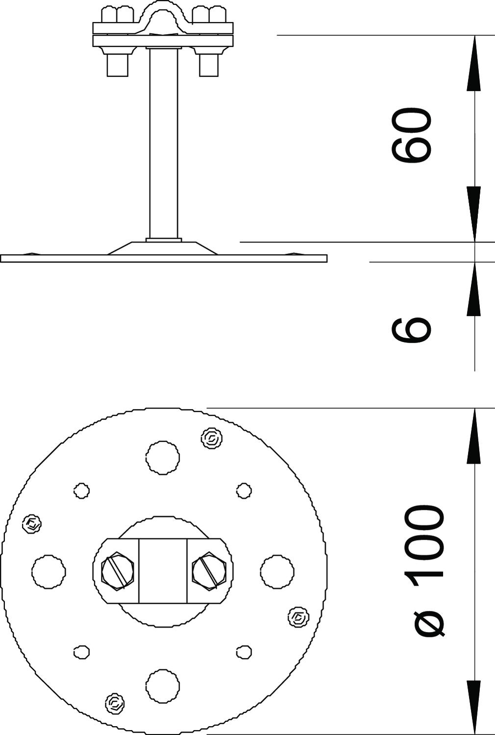 Ajuste Rd 8-10 mm Altura de montagem 60 mm Aplicação Telhado plano Comprimento 100 mm Diâmetro do condutor máx. 10 Diâmetro do condutor mín. 8 Dimensão 60mm Material Aço Medida H 60 mm Pegada de CO2 (GWP) do berço ao portão 0,5383 kg CO2e / 1 Peça Superfície Galvanizado por imersão a quente após maquinação Tipo de fixação do condutor com abraçadeira de aparafusar Tipo de montagem adesivo - Todos os tipos