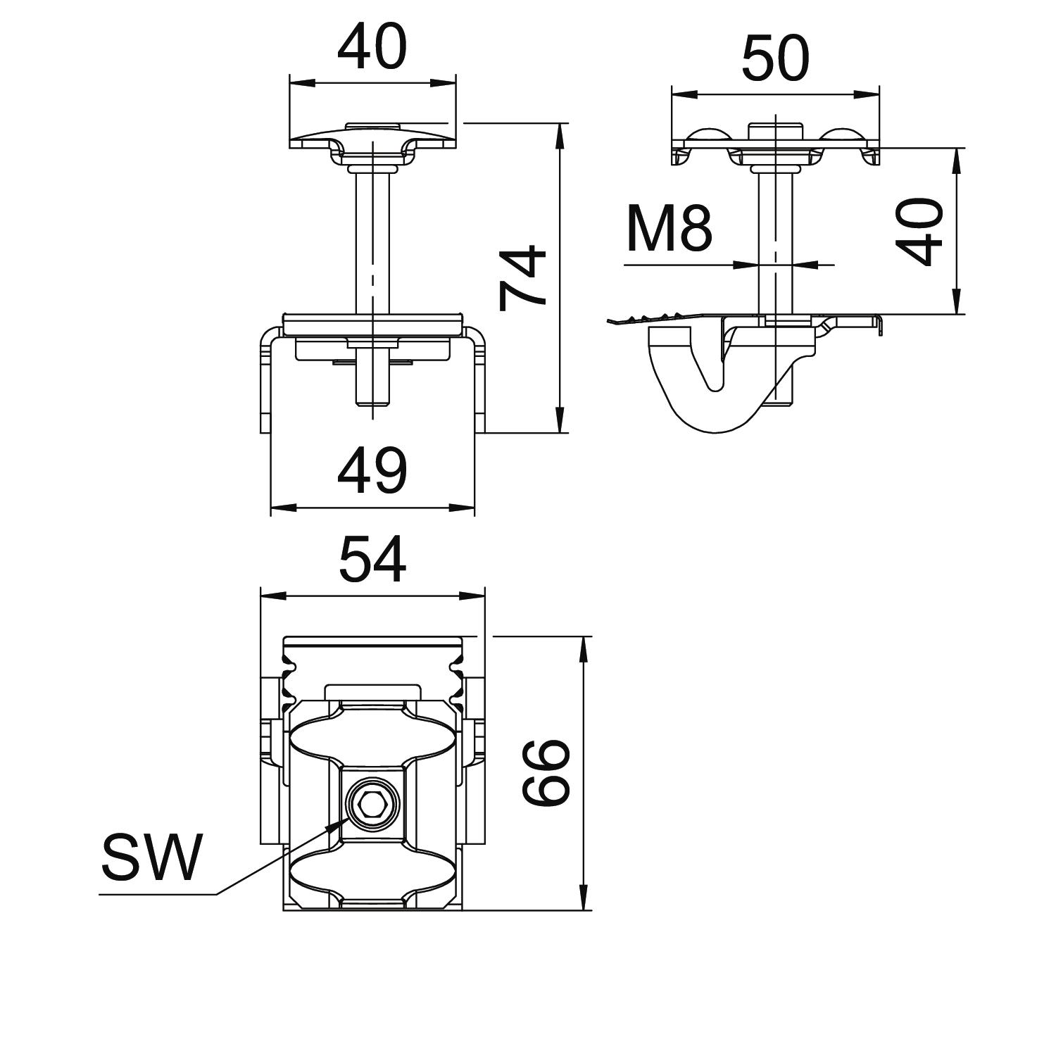 Descrição do produtoTerminal intermédio para fixação de módulos fotovoltaicos em perfis de estrutura de sistemas em espaço aberto. Pré-fixação bloqueável das estruturas dos módulos ao perfil de estrutura. Adequado para uma largura de rasgo de 10 mm. Fixação por parafusos do módulo fotovoltaico com chave sextavada tamanho 6.