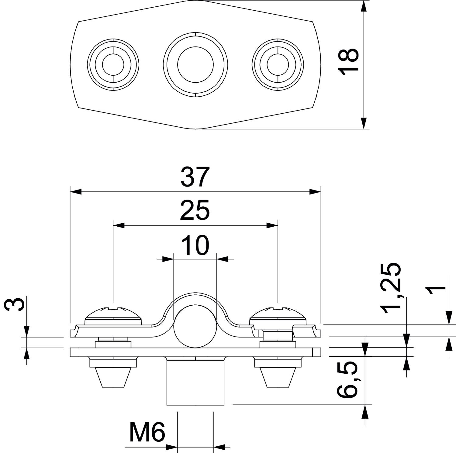 Dimensão 8-10mm Distância à parede sim Espessura do material 1,25 mm Funktionsgaranti sim Intervalo de aperto D máx. 10 mm Intervalo de aperto D mín. 8 mm Livre de halogéneos sim Material Aço Medida A 37 mm Medida B 25 mm Medida b 18 mm Medida D 10 mm Medida d máx. 10 mm Medida d mín. 8 mm Medida H1 6,5 mm Medida t1 (mm) 1 Medida t2 (mm) 1,25 Medida x 3 mm Número de cabos/tubos 1 para diâmetro 8 - 10 Pegada de CO2 (GWP) do berço ao portão 0,053 kg CO2e / 1 Peça Resistente à radiação UV sim Revestimento plástico não Superfície Galvanizado por imersão a quente após maquinação Tipo de fixação Ligação roscada Versão fechadas - Todos os tipos