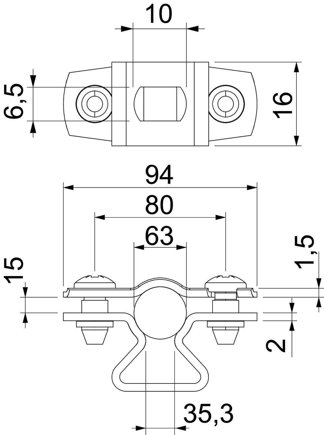 Dimensão 53-63mm Distância à parede sim Espessura do material 1,5 mm Funktionsgaranti sim Intervalo de aperto D máx. 63 mm Intervalo de aperto D mín. 53 mm Livre de halogéneos sim Material Aço inoxidável, livre de ferrugem 1.4301 Medida A 94 mm Medida B 80 mm Medida b 16 mm Medida d máx. 63 mm Medida d mín. 53 mm Medida L 10 mm Medida s 35,3 mm Medida t1 (mm) 1,5 Medida t2 (mm) 2 Medida x 15 mm Número de cabos/tubos 1 para diâmetro 53 - 63 Pegada de CO2 (GWP) do berço ao portão 0,4518 kg CO2e / 1 Peça Resistente à radiação UV sim Revestimento plástico não Versão fechadas - Todos os tipos
