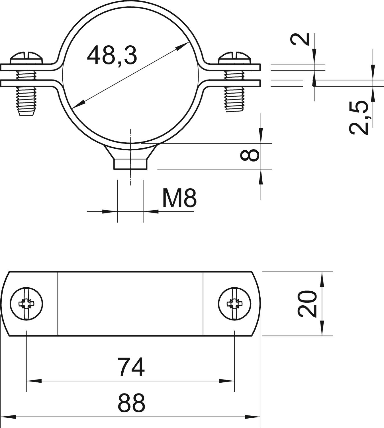 Apropriado para área de proteção contra incêndios não Comprimento 88 mm Dimensão 1 1/2" Dimensão do furo M8 mm Espessura do material 2,5 mm Intervalo de aperto D máx. 48,5 mm Intervalo de aperto D mín. 45,5 mm Largura 20 mm Livre de halogéneos não Material Aço Medida A 88 mm Medida B 74 mm Medida D 48,3 mm Medida d mín. 48,3 mm Medida t 2 mm Medida t1 (mm) 2,5 Medida x 3 mm para diâmetro 48,5 para diâmetro de tubo M50 Parafuso M6 x 18 Pegada de CO2 (GWP) do berço ao portão 0,2015 kg CO2e / 1 Peça Resistente à radiação UV sim Revestimento plástico não Rosca M8 Superfície Galvanizado por imersão a quente após maquinação Tamanho 1 1/2" Tipo de fixação Orifício roscado Versão fechadas - Todos os tipos