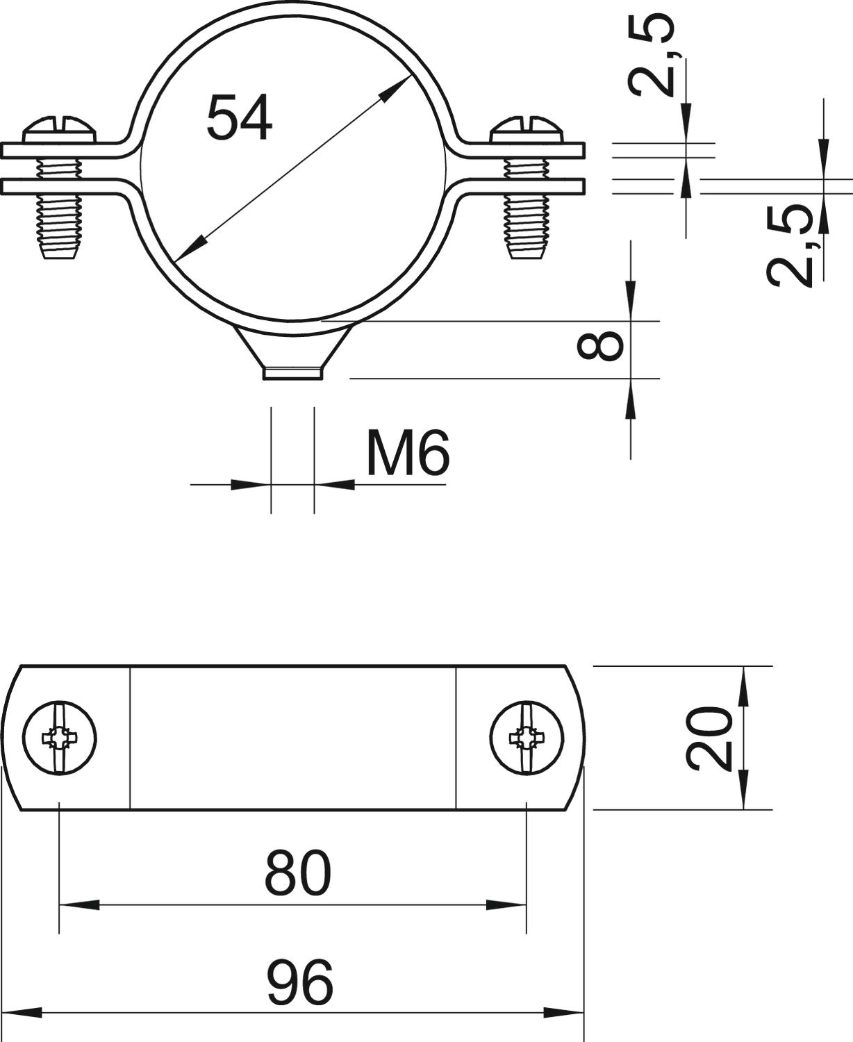 Apropriado para área de proteção contra incêndios não Comprimento 96 mm Dimensão 1 3/4" Dimensão do furo M6 mm Espessura do material 2,5 mm Intervalo de aperto D máx. 54 mm Intervalo de aperto D mín. 51 mm Largura 20 mm Livre de halogéneos não Material Aço Medida A 96 mm Medida B 80 mm Medida D 54 mm Medida d mín. 54 mm Medida t 2,5 mm Medida t1 (mm) 2,5 Medida x 3 mm para diâmetro 54 Parafuso M6 x 18 Pegada de CO2 (GWP) do berço ao portão 0,2375 kg CO2e / 1 Peça Resistente à radiação UV sim Revestimento plástico não Rosca M6 Superfície Galvanizado por imersão a quente após maquinação Tamanho 1 3/4" Tipo de fixação Orifício roscado Versão fechadas - Todos os tipos