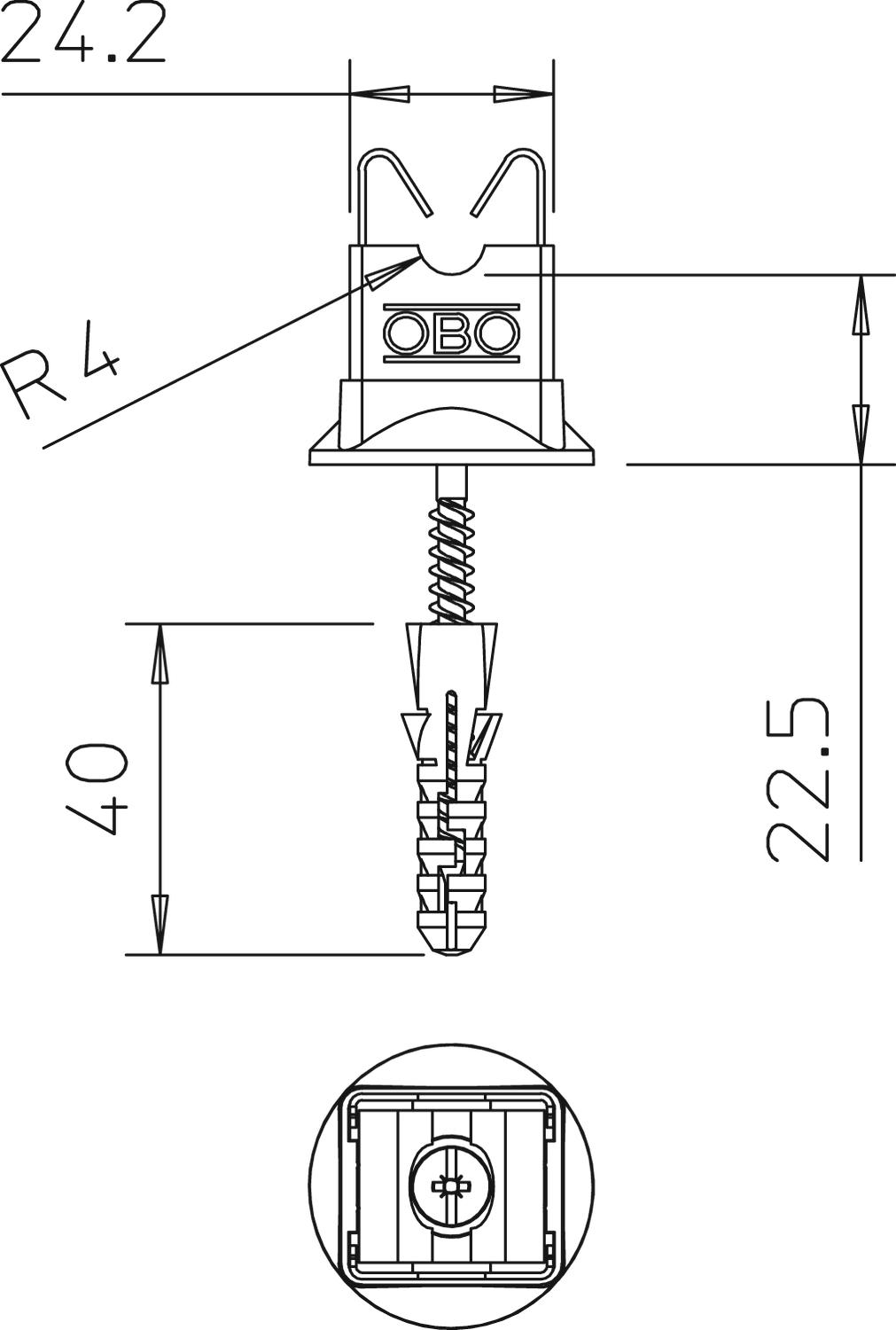 • pré-montado com anilha e parafuso para madeira 5 x 60 e bucha plástica 8 x 40