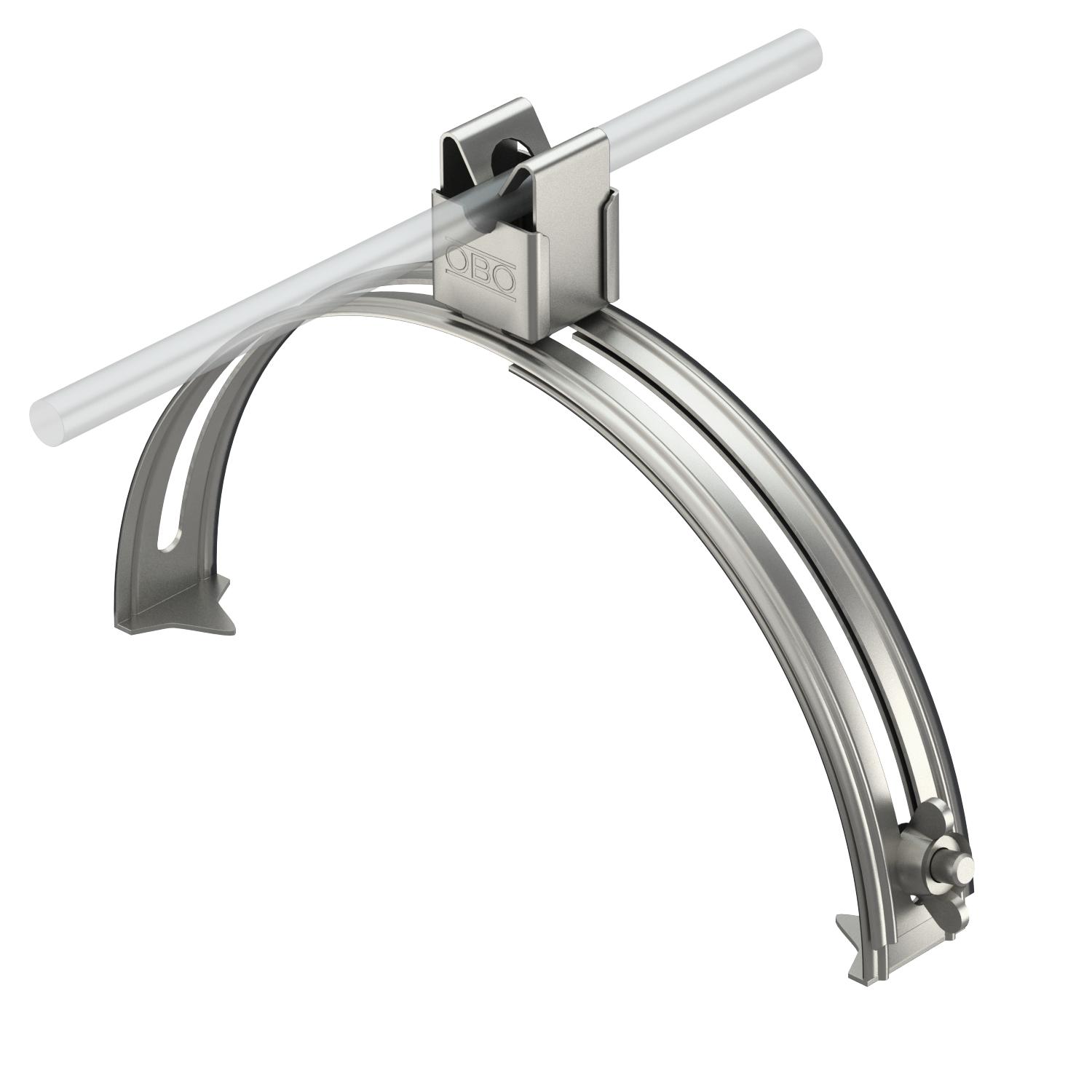Ajuste Rd 8 mm Altura de montagem 20 mm Aplicação Cume Diâmetro do condutor máx. 8 Diâmetro do condutor mín. 8 Dimensão 8mm Intervalo de aperto D máx. 260 mm Intervalo de aperto D mín. 185 mm Material Aço inoxidável, livre de ferrugem 1.4301 Pegada de CO2 (GWP) do berço ao portão 0,6183 kg CO2e / 1 Peça Tipo de fixação do condutor com abraçadeira de clip Tipo de montagem tensionável - Todos os tipos