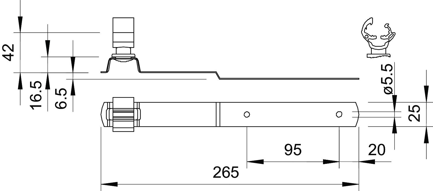 Ajuste Rd 8-10 mm Altura de montagem 42 mm Aplicação Superfície do telhado Comprimento 265 mm Diâmetro do condutor máx. 10 Diâmetro do condutor mín. 8 Dimensão 8mm Material Aço inoxidável, livre de ferrugem 1.4301 Pegada de CO2 (GWP) do berço ao portão 0,351 kg CO2e / 1 Peça Tipo de fixação do condutor com abraçadeira de aperto Tipo de montagem aparafusável - Todos os tipos
