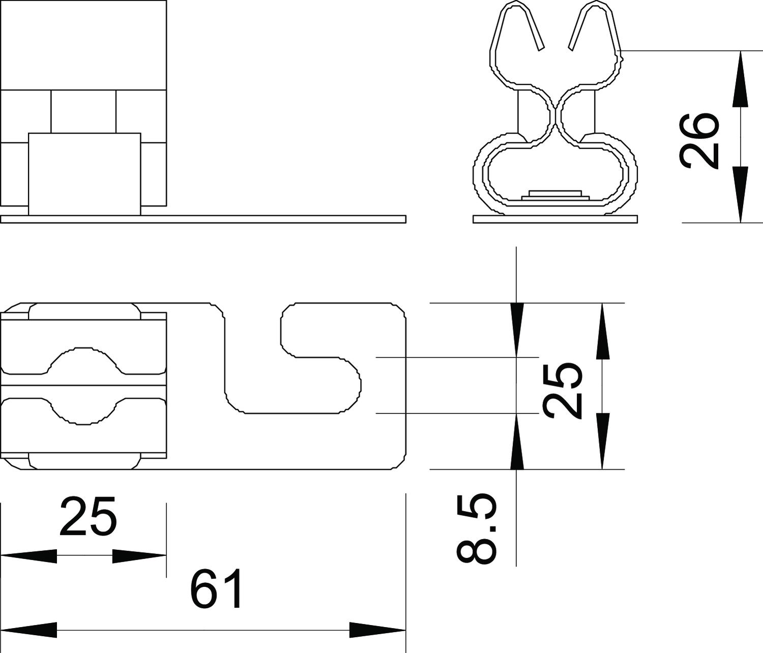 • base com furo oblongo Ø 8,5 mm