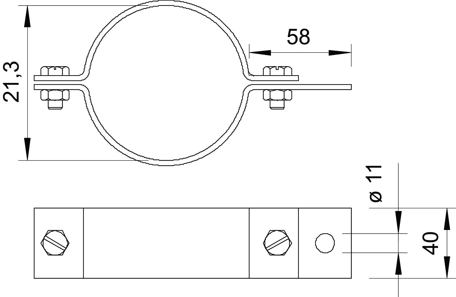 • com furo de ligação Ø 11 mm