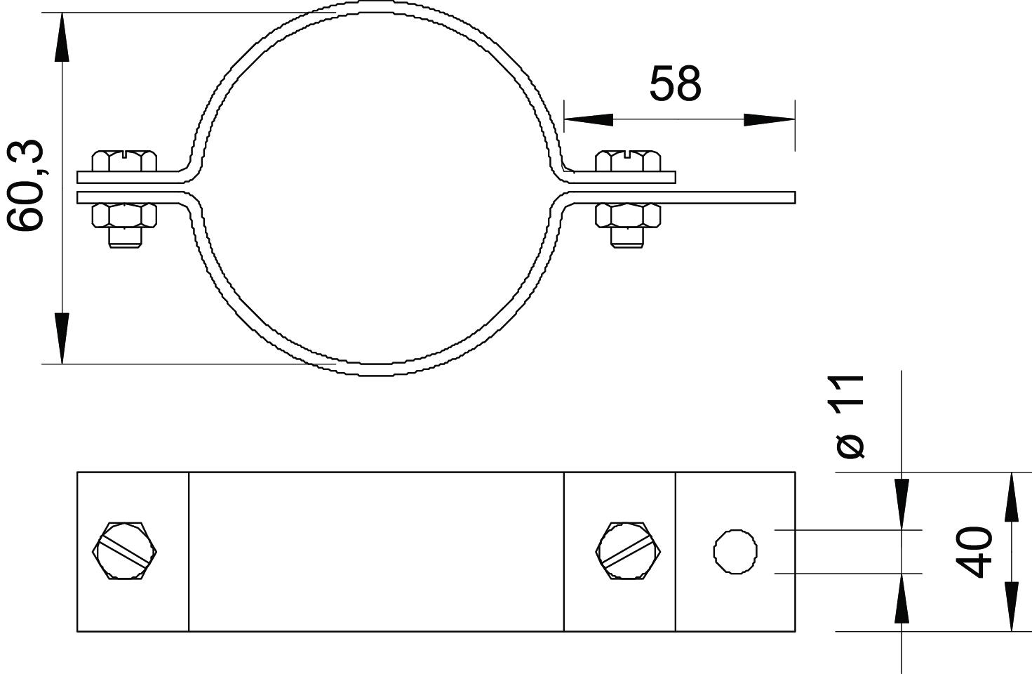 Área de aperto mín. 60,3 mm Dimensão 2" Guia de condutor redondo integrado não Material Aço Medida d mín. 60,3 mm Orifício de ligação 11 mm para tubo 2 Pegada de CO2 (GWP) do berço ao portão 0,7423 kg CO2e / 1 Peça Potegido contra explosões não Superfície Galvanizado por imersão a quente após maquinação União de dois metais não - Todos os tipos