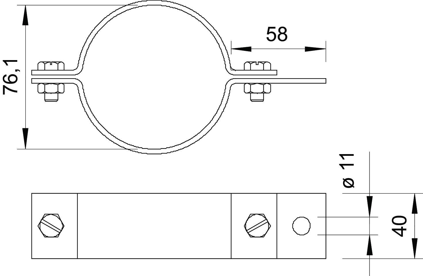 Área de aperto mín. 76,1 mm Dimensão 2 1/2" Guia de condutor redondo integrado não Material Aço Medida d mín. 76,1 mm Orifício de ligação 11 mm para tubo 21/2 Pegada de CO2 (GWP) do berço ao portão 0,8299 kg CO2e / 1 Peça Potegido contra explosões não Superfície Galvanizado por imersão a quente após maquinação União de dois metais não - Todos os tipos