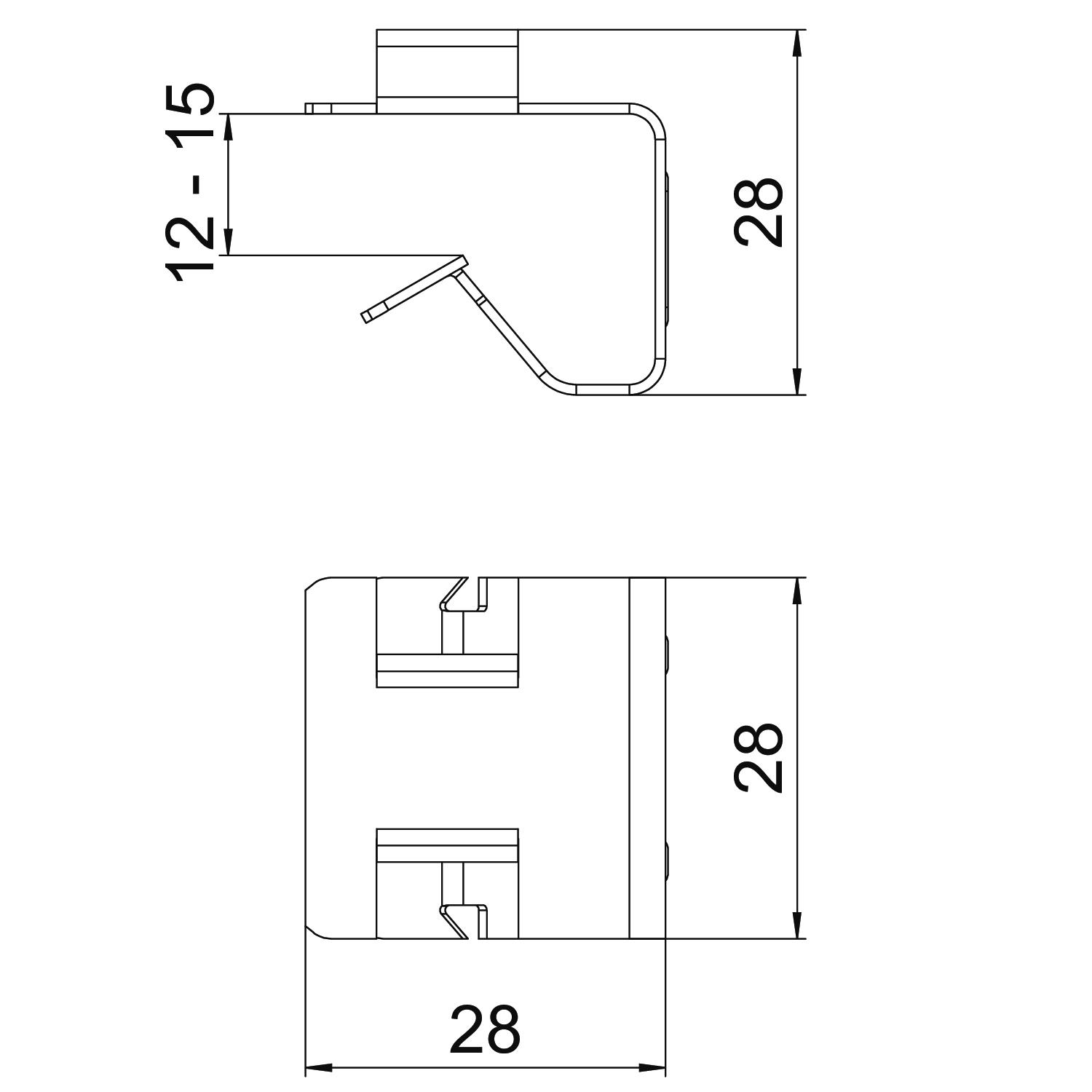 Altura 28 mm Comprimento 28 mm Cor zinco Dimensão 12-15mm Dobradiça não Dobradiça ajustável não Espessura do flange F máx. 15 mm Espessura do flange F mín. 12 mm Largura 28 mm Material Aço Medida L 11 mm Superfície Lamela de zinco Tipo de fixação apertar Tipo de ligação do componente Outros - Todos os tipos