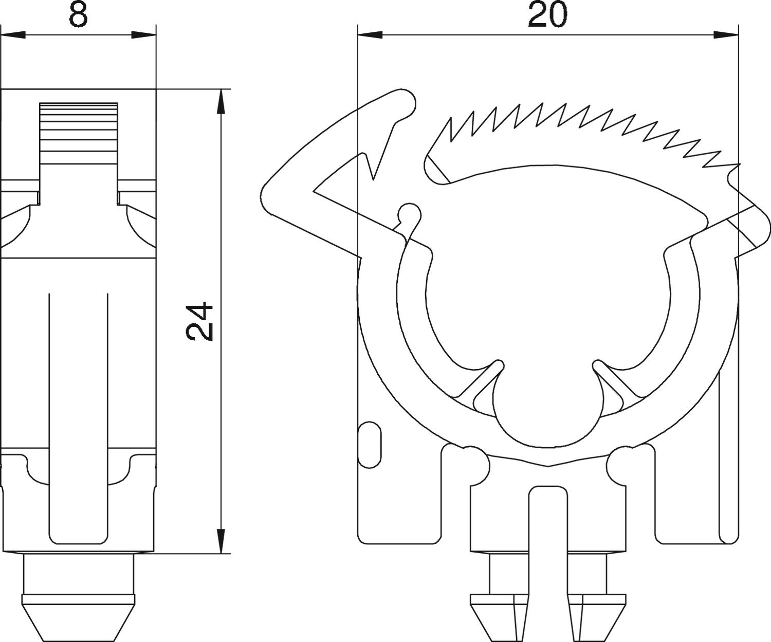 Descrição do produtoFixador para aplicação em espelhos do suporte de aparelhos universais, em suportes de aparelhos, suportes modular e Telitanks T4L e T8NL para alívio normalizado da tensão de cabos alimentados.