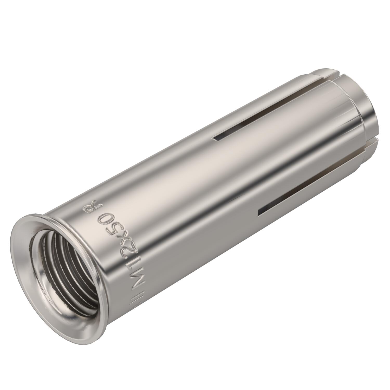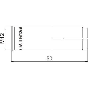 Descrição do produtoÂncora de fixação de fixação simples, com rosca interna em aço, para ancoragem de, por ex., sistemas de caminhos de cabos, consolas, estruturas de aço, etc. em betão não armado em interiores e exteriores. Para cravar com martelo. Com margem estampada para evitar que seja puxada para dentro do furo. Não enferruja e é altamente resistente à corrosão. A bucha de fixação é tensionada contra a parede do furo quando o pino interno é introduzido, por ex., com a ferramenta de fixação manual EHS M. Proteção antifogo testada, classe de resistência ao fogo R 120 conforme a Certificação técnica europeia ETA-07/0135 para betão.