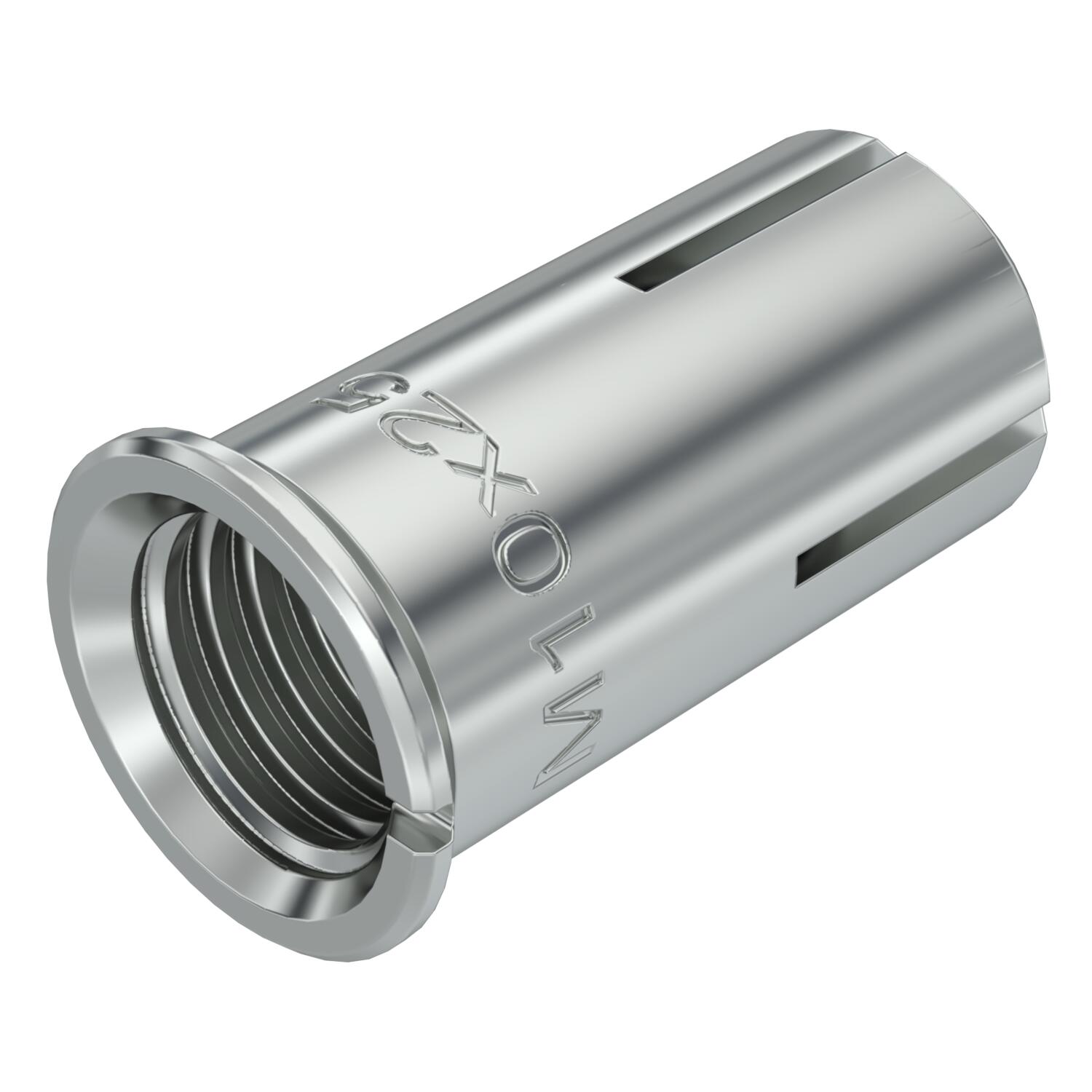 Descrição do produtoÂncora de fixação de fixação simples, com rosca interna em aço, para ancoragem de, por ex., sistemas de caminhos de cabos, consolas, estruturas de aço, etc. em betão não armado em interiores e exteriores. Para cravar com martelo. Com margem estampada para evitar que seja puxada para dentro do furo. Não enferruja e é altamente resistente à corrosão. A bucha de fixação é tensionada contra a parede do furo quando o pino interno é introduzido, por ex., com a ferramenta de fixação manual EHS M. Proteção antifogo testada, classe de resistência ao fogo R 120 conforme a Certificação técnica europeia ETA-07/0135 para betão.