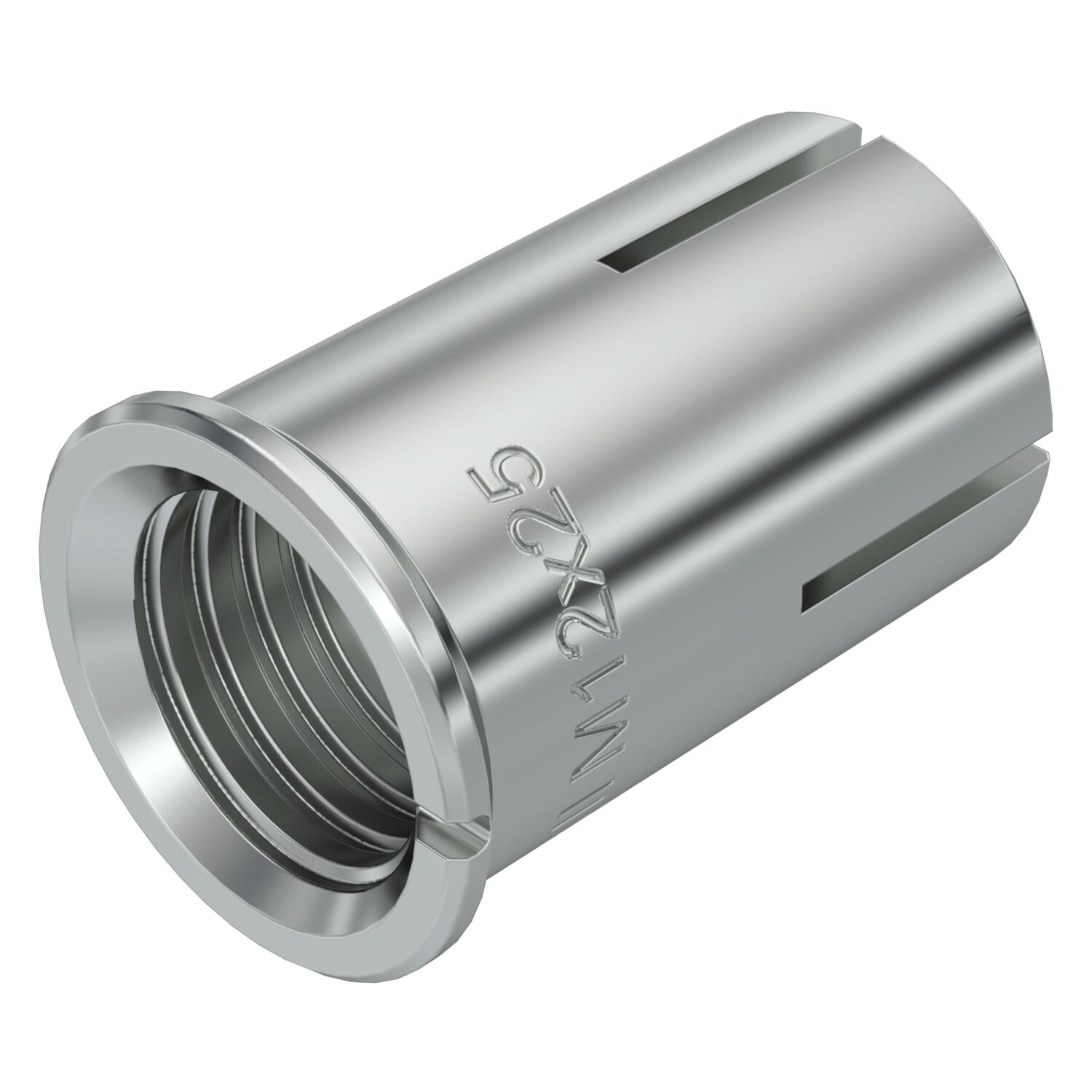 Descrição do produtoÂncora de fixação de fixação simples, com rosca interna em aço, para ancoragem de, por ex., sistemas de caminhos de cabos, consolas, estruturas de aço, etc. em betão não armado em interiores e exteriores. Para cravar com martelo. Com margem estampada para evitar que seja puxada para dentro do furo. Não enferruja e é altamente resistente à corrosão. A bucha de fixação é tensionada contra a parede do furo quando o pino interno é introduzido, por ex., com a ferramenta de fixação manual EHS M. Proteção antifogo testada, classe de resistência ao fogo R 120 conforme a Certificação técnica europeia ETA-07/0135 para betão.