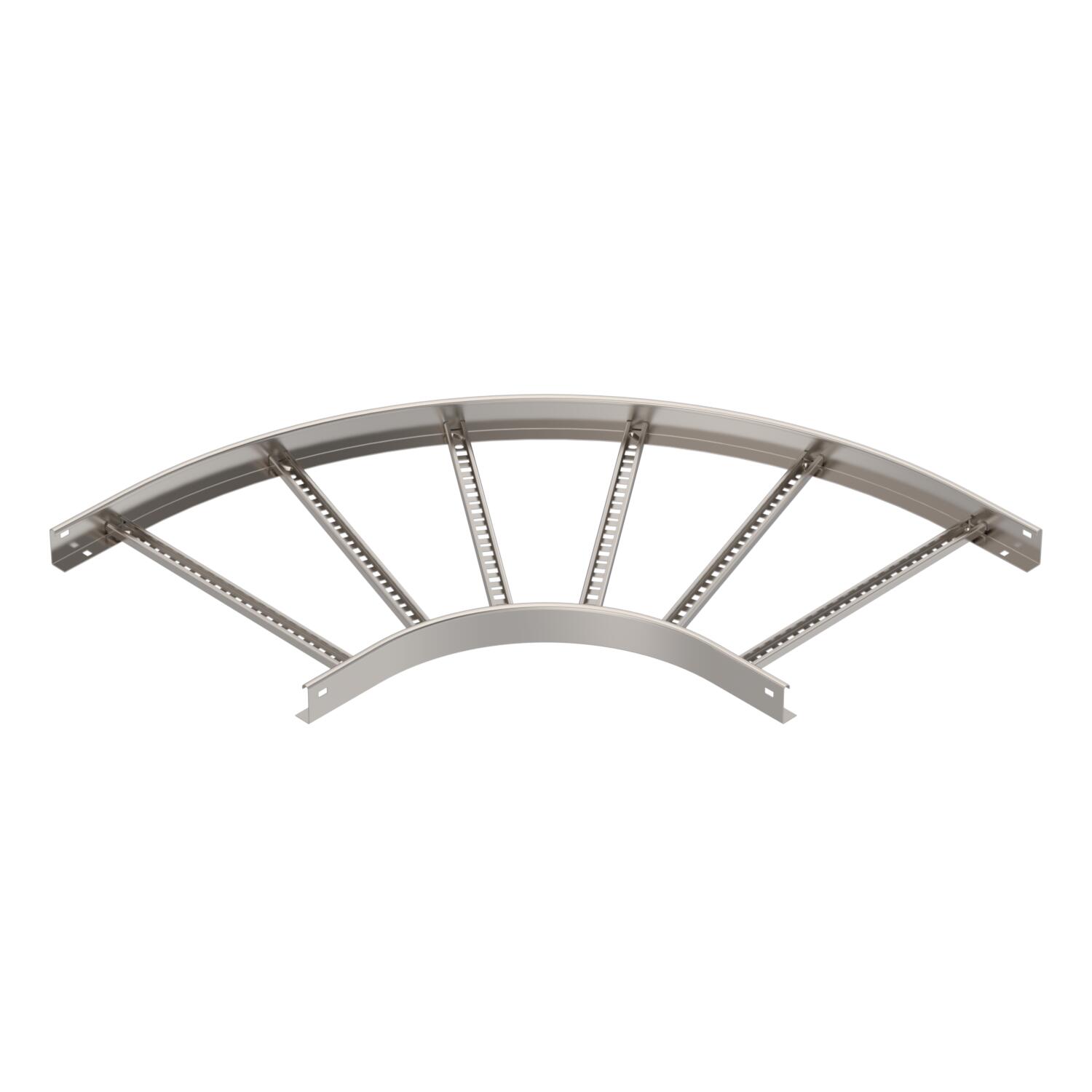 Descrição do produtoÂngulo 90º horizontal com degraus soldados para todos os caminhos de cabos tipo escada com altura lateral de 60 mm.