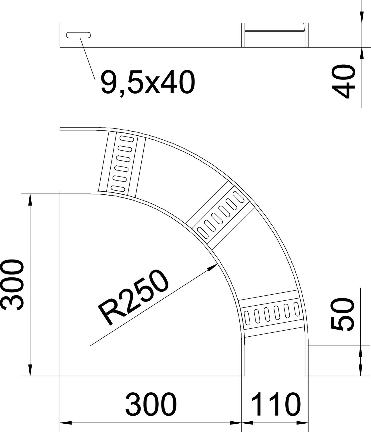 Descrição do produtoÂngulo de 90° para caminho de cabos construção naval do tipo SL 62 com altura lateral de 40 mm, com degraus trapezoidais soldados, abertos e perfurados para baixo.