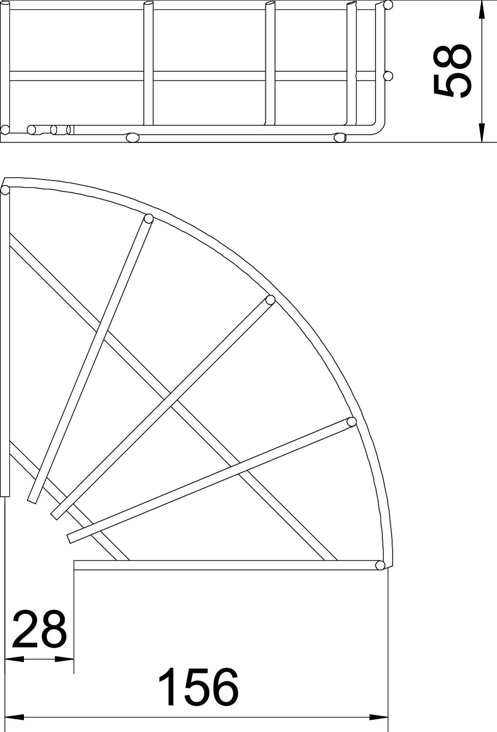 Descrição do produtoÂngulo 90°, horizontal, para caminhos de cabos em varão com altura lateral de 55 mm.