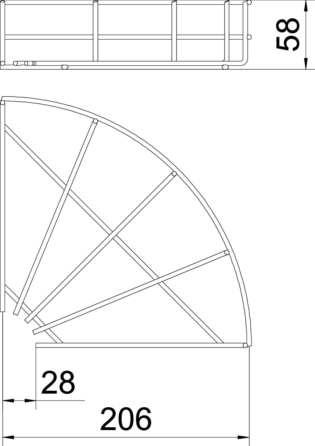 Descrição do produtoÂngulo 90°, horizontal, para caminhos de cabos em varão com altura lateral de 55 mm.