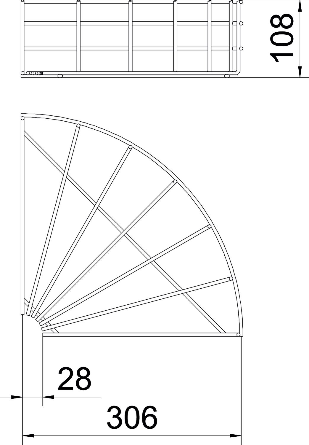 Descrição do produtoÂngulo 90°, horizontal, para caminhos de cabos em varão com altura lateral de 105 mm.