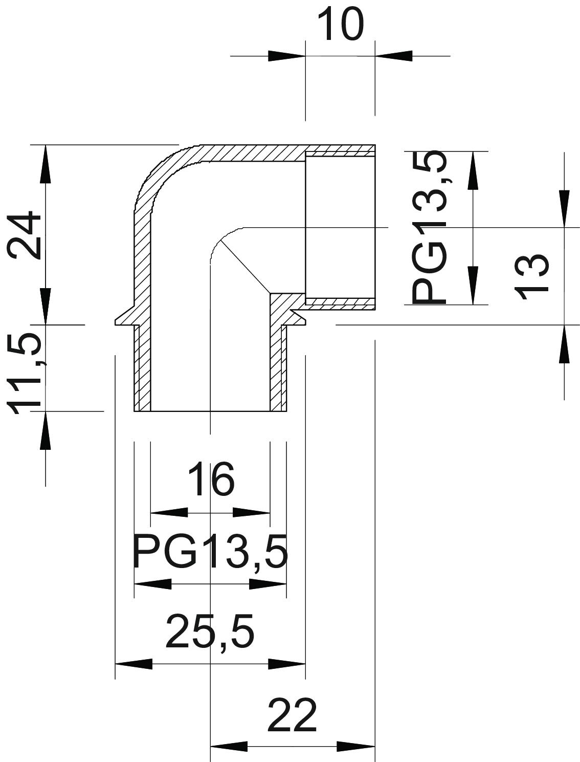 Descrição do produtoÂngulo de apoio com rosca PG interna e externa conforme a DIN 40430.