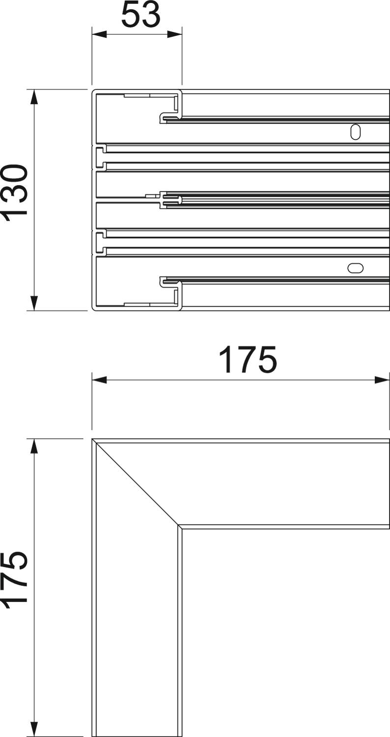 Alcance do ângulo máx. 90 mm Alcance do ângulo mín. 90 mm Altura 53 mm Comprimento 175 mm Cor branco puro; RAL 9010 Dimensão 175x175x130 Forma simétrico Gama de temperaturas de aplicação máx. 60 °C Gama de temperaturas de aplicação mín. -15 °C Grampo de fixação de cabos não Grau de proteção IP40 Grau de proteção código IK IK08 Instalação no pavimento sim Largura 130 mm Largura da tampa 45 mm Largura da tampa 2 45 mm Livre de halogéneos não Material Policloreto de vinilo Número de tampas 2 para a dimensão da calha 53 x 130 mm para altura da calha 53 mm para largura da calha 130 mm Pegada de CO2 (GWP) do berço ao portão 2,0038 kg CO2e / 1 Peça Película protetora sim Tipo de montagem das tampas interno Tratamento anti-bacteriano não União de calhas não Versão Parte inferior - Todos os tipos