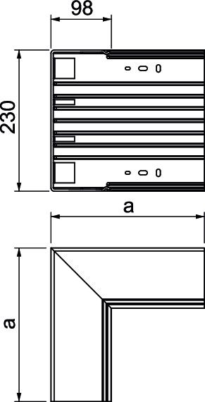 Descrição do produtoÂngulo interno para alteração da direção das calhas WDK.