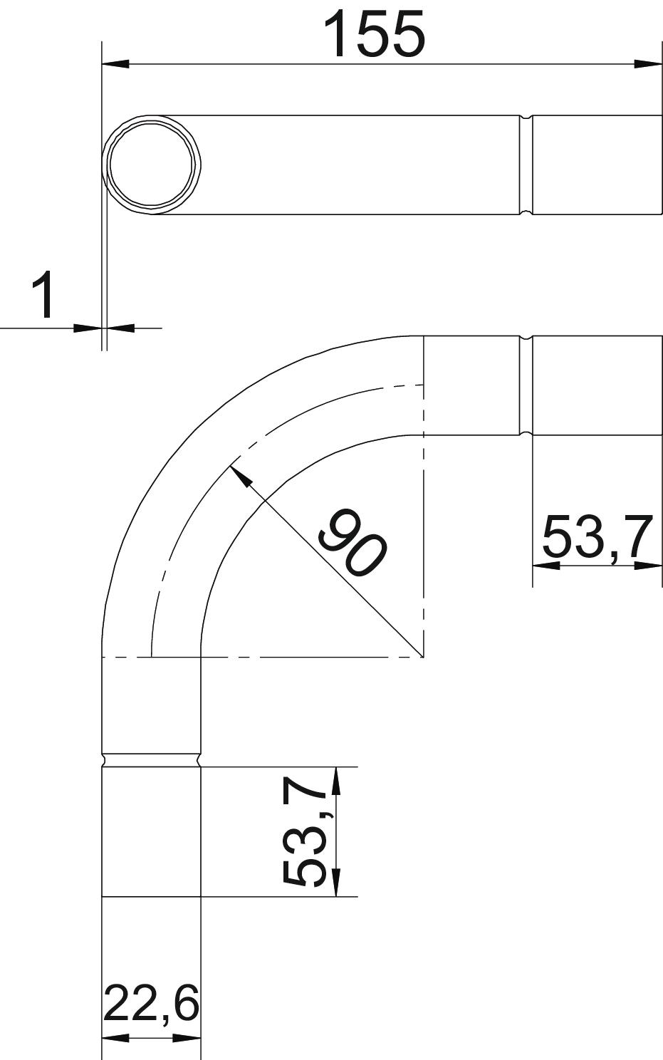 Ângulo do curva 90 ° Com escotilha de inspeção e tampa não Com manga sim Dimensão Ø20mm Duas peças não Flexível não Livre de halogéneos não Material Aço Medida A 53,7 mm Medida B 155 mm Medida d 20,6 mm Medida D 22,6 mm Medida l 30 mm Medida M (mm) M20 Medida R 90 mm Medida t 1 mm para diâmetro nominal de tubo 20 mm Pegada de CO2 (GWP) do berço ao portão 0,3913 kg CO2e / 1 Peça Superfície eletrogalvanizado Superfície escovada não Superfície polida não Versão Encaixe - Todos os tipos