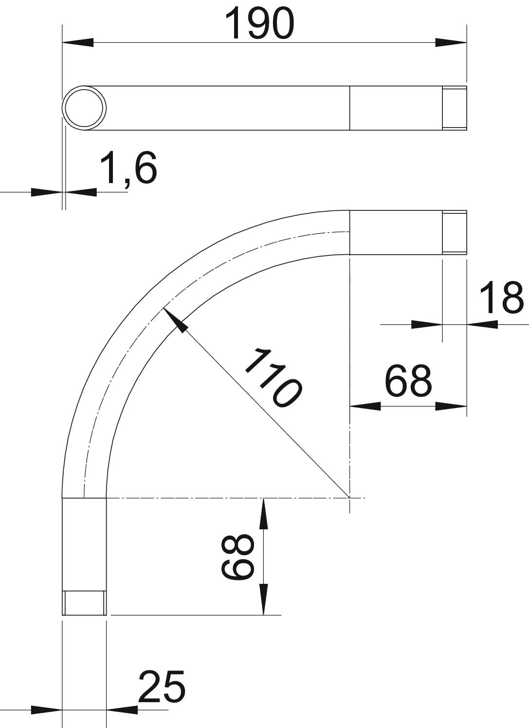 Ângulo do curva 90 ° Com escotilha de inspeção e tampa não Com manga sim Dimensão M25x1,5 Duas peças não Flexível não Livre de halogéneos não Material Aço Medida A 68 mm Medida B 190 mm Medida D 25 mm Medida l 18 mm Medida M (mm) M25 Medida R 110 mm Medida t 1,6 mm para diâmetro nominal de tubo 25 mm Pegada de CO2 (GWP) do berço ao portão 1,0908 kg CO2e / 1 Peça Rosca M25x1,5 Superfície Galvanizado por imersão a quente após maquinação Superfície escovada não Superfície polida não Versão Rosca - Todos os tipos