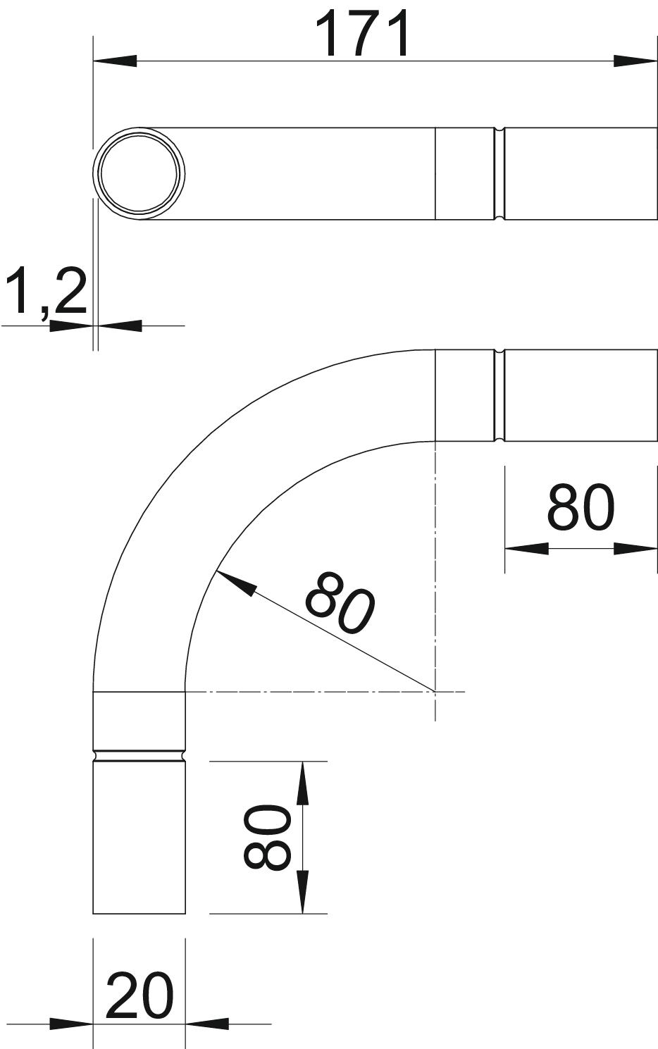 Ângulo do curva 90 ° Com escotilha de inspeção e tampa não Com manga sim Dimensão Ø20mm Duas peças não Flexível não Gama de temperaturas de aplicação máx. 250 °C Gama de temperaturas de aplicação mín. -45 °C Livre de halogéneos não Material Alumínio Medida A 80 mm Medida B 171 mm Medida D 20,2 mm Medida l 30 mm Medida M (mm) M20 Medida R 70 mm Medida t 1,2 mm para diâmetro nominal de tubo 20 mm Superfície escovada não Superfície polida não Versão Encaixe - Todos os tipos
