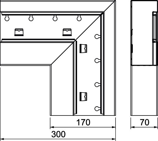 Alcance do ângulo mín. 90 mm Alteração da direção vertical descendente Altura 70 mm Comprimento 300 mm Cor branco puro; RAL 9010 Dimensão 70x170x300 Gama de temperaturas de aplicação máx. 60 °C Gama de temperaturas de aplicação mín. -25 °C Grampo de fixação de cabos não Grau de proteção IP 30 Grau de proteção código IK IK10 Instalação no pavimento sim Largura 170 mm Largura da tampa 76,5 mm Livre de halogéneos sim Material Aço Número de tampas 1 para altura da calha 70 mm para largura da calha 170 mm Pegada de CO2 (GWP) do berço ao portão 7,1581 kg CO2e / 1 Peça Película protetora sim Simétrico não Tipo de montagem das tampas interno Tratamento anti-bacteriano não União de calhas não Versão Parte inferior - Todos os tipos