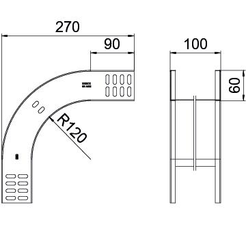 Descrição do produtoÂngulo vertical de 90° de descida para todos os tipos de caminhos de cabos em chapa com aba de 60 mm.
