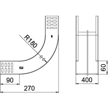 Descrição do produtoÂngulo vertical de 90° de subida para todos os tipos de caminhos de cabos em chapa com aba de 60 mm.