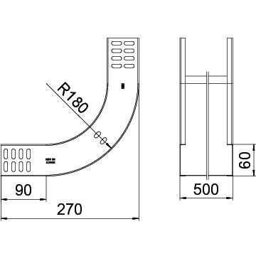 Descrição do produtoÂngulo vertical de 90° de subida para todos os tipos de caminhos de cabos em chapa com aba de 60 mm.