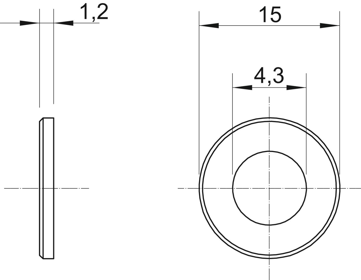 Diâmetro exterior 15 mm Diâmetro interior 4,3 mm Dimensão M4,Ø15mm Em forma de faceta não Endurecido não Espessura das chapas 0,05 in Espessura do material 1,2 mm Material Aço Medida d 4,3 mm Medida d máx. 15 mm Medida d mín. 15 mm Medida h 1,2 mm Pegada de CO2 (GWP) do berço ao portão 0,0035 kg CO2e / 1 Peça Rosca M4 Superfície eletrogalvanizado - Todos os tipos
