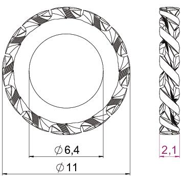 Descrição do produtoAnilha recartilhada conforme a norma DIN 6798, forma A.