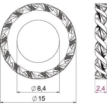 Descrição do produtoAnilha recartilhada conforme a norma DIN 6798, forma A.