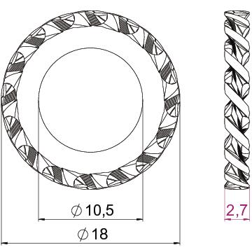 Descrição do produtoAnilha recartilhada conforme a norma DIN 6798, forma A.