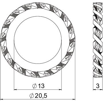 Descrição do produtoAnilha recartilhada conforme a norma DIN 6798, forma A.