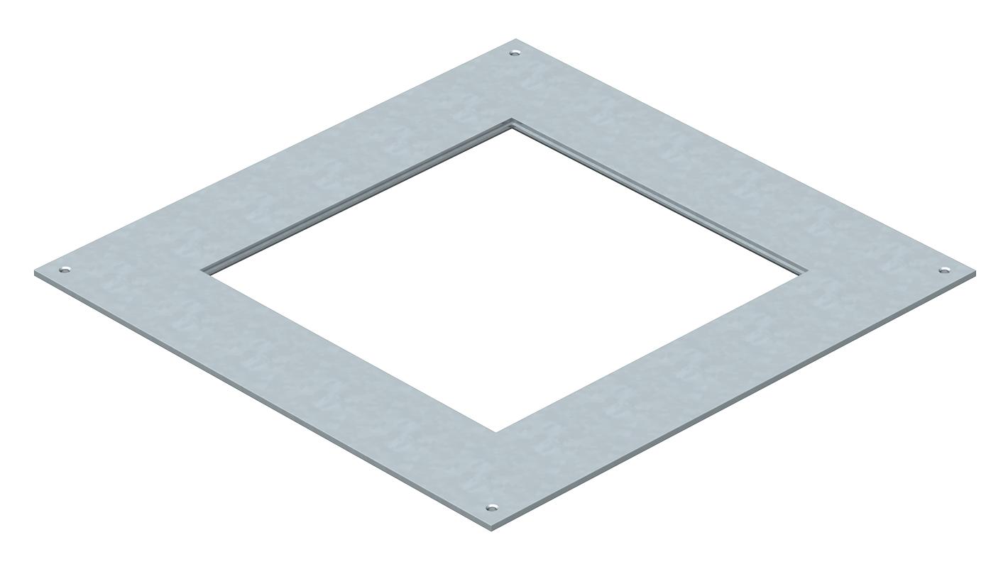 Descrição do produtoAro de redução para caixa de pavimento do tipo UZD250-3/4, para instalação de uma tampa de tamanho 9. Abertura de montagem com 3 mm de espessura para aplicação posterior de tampa cega.