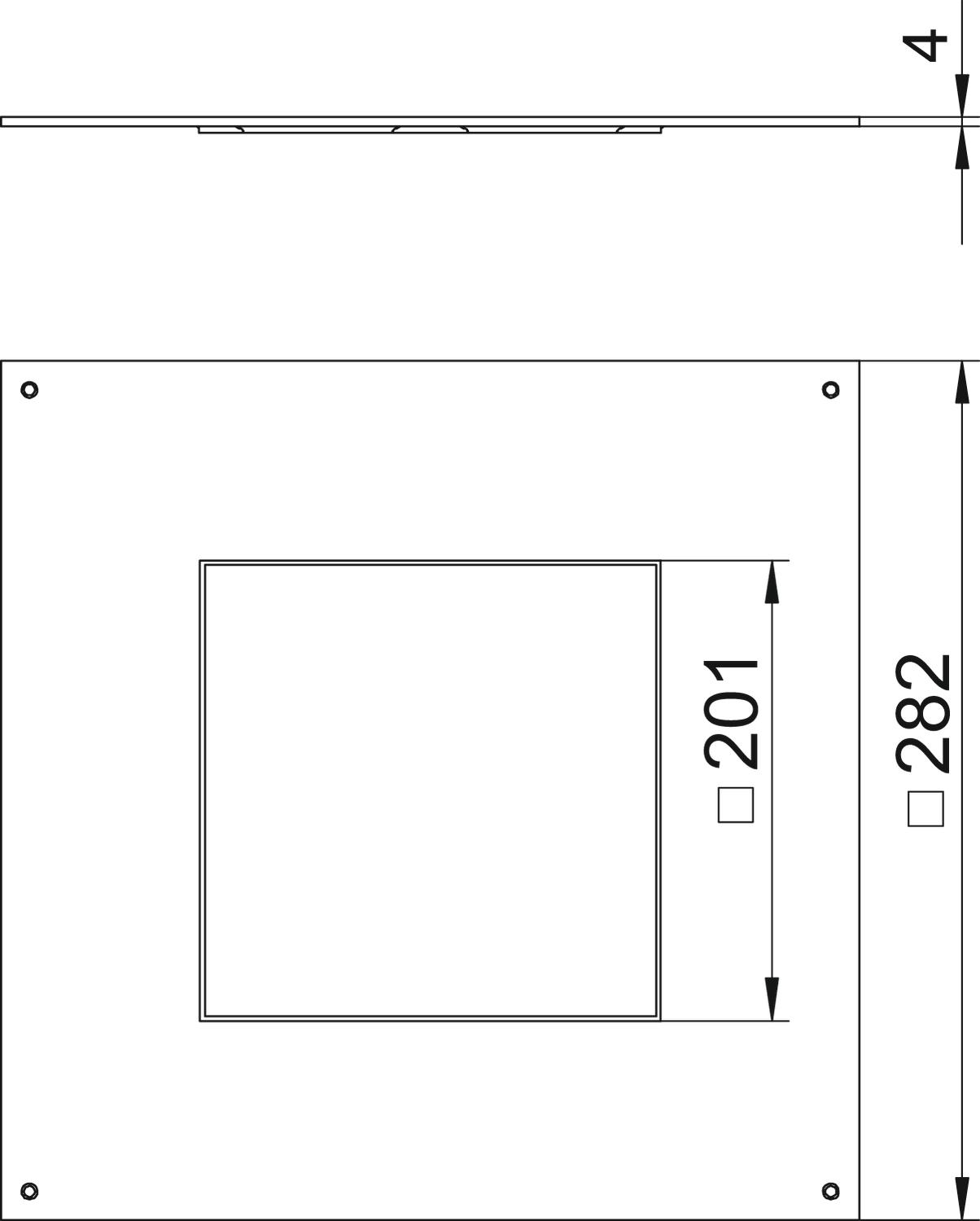 Descrição do produtoAro de redução para caixa de pavimento do tipo UZD250-3/4, para instalação de uma tampa de tamanho 4. Abertura de montagem com 3 mm de espessura para aplicação posterior de tampa cega.