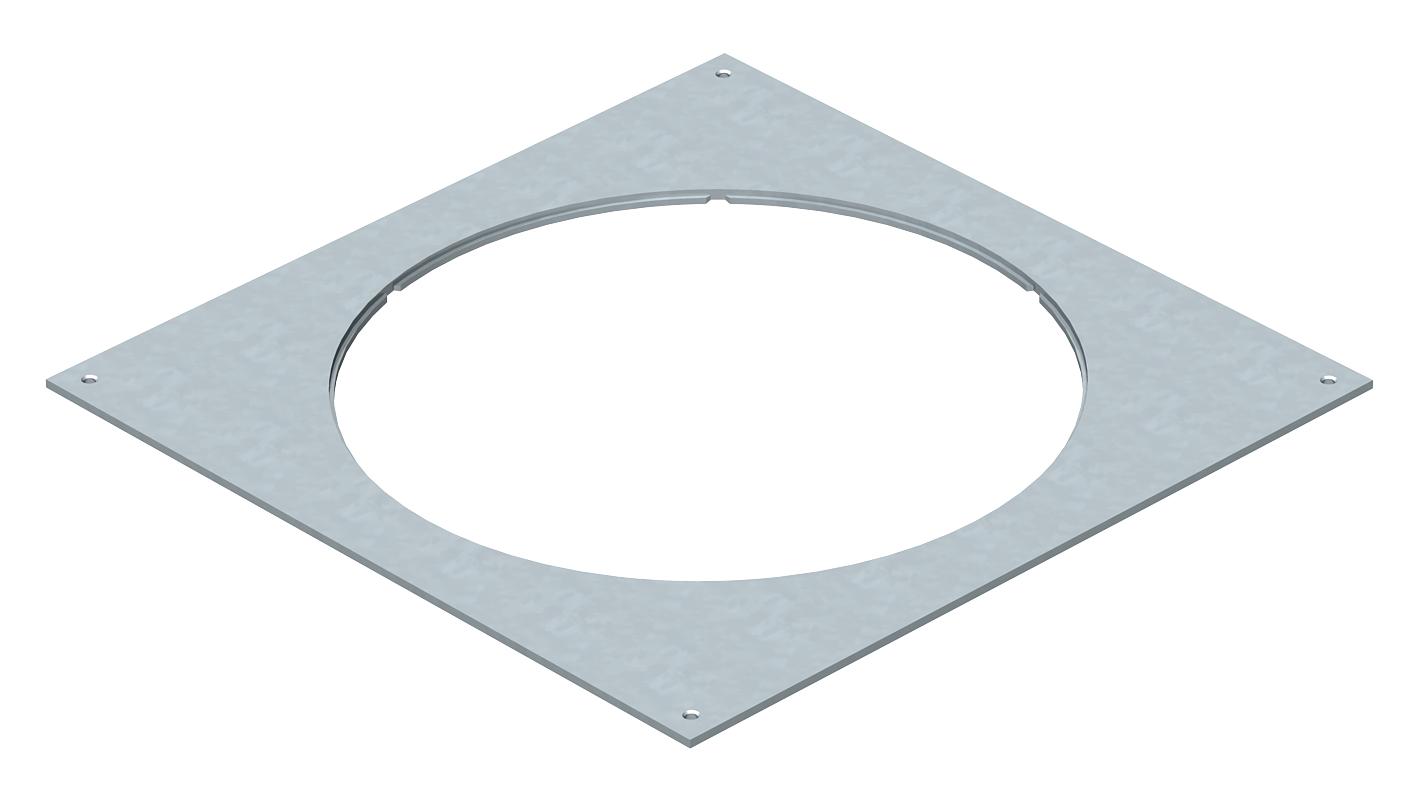 Descrição do produtoAro de redução para caixa de pavimento do tipo UZD350-3, para instalação de uma tampa de tamanho R7. Abertura de montagem com 3 mm de espessura para aplicação posterior de tampa cega.