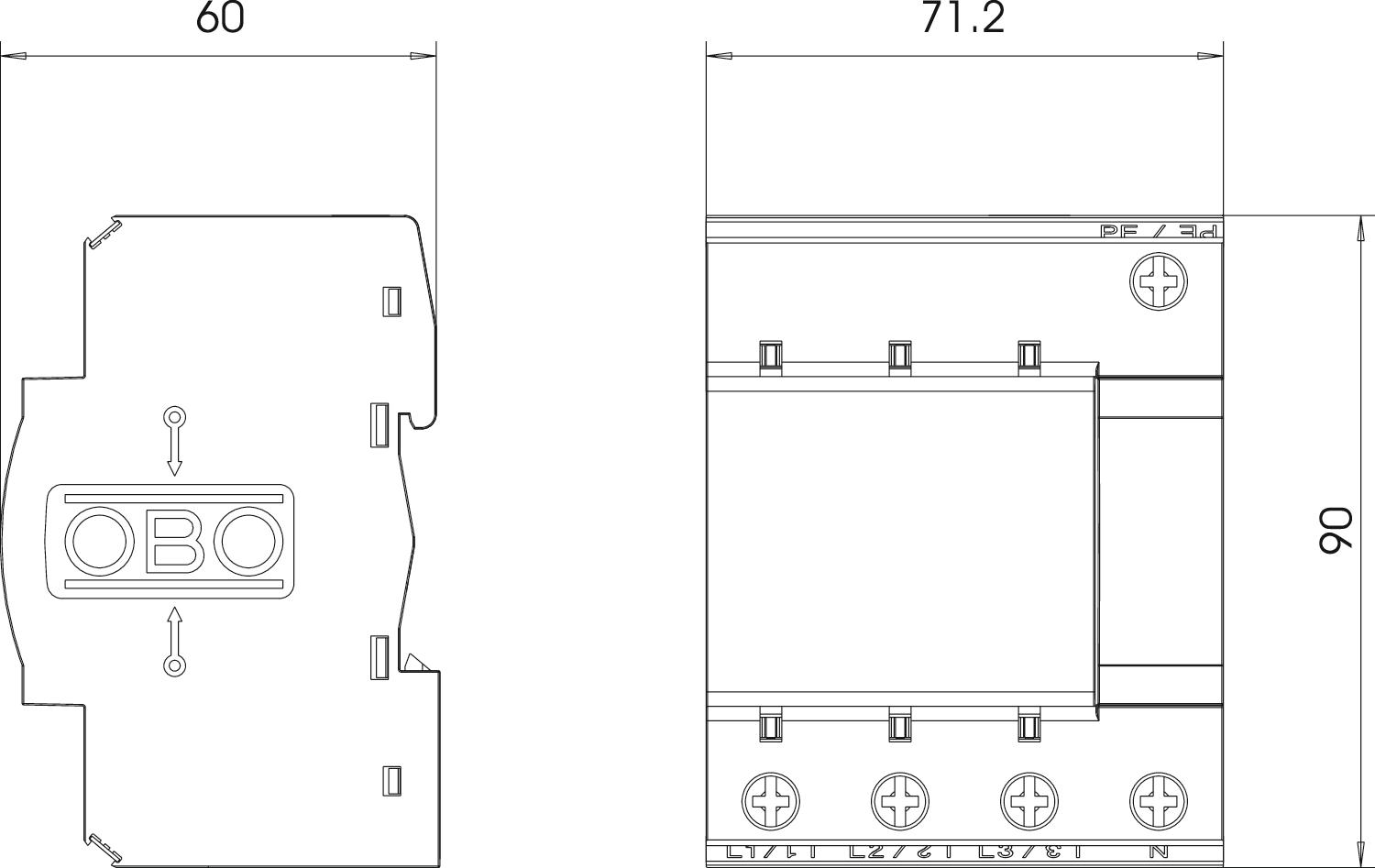 Descrição do produtoBase para V 50-B+C, descarregador combinado, descarregador de corrente de raio e sobretensões tipo 1+2