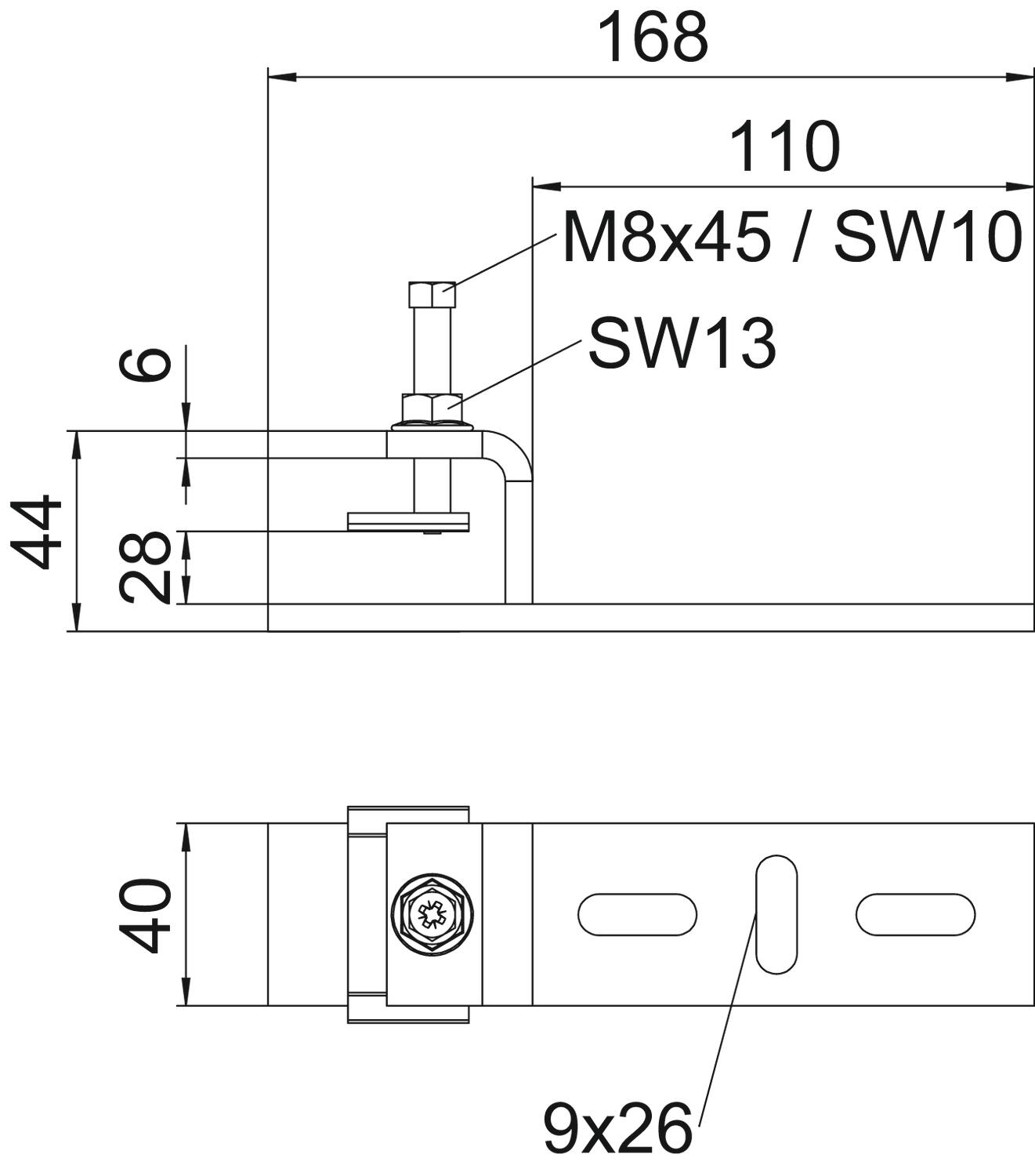 Descrição do produtoBeam clamp for mounting light components on horizontal steel beams. Suitable, for example, for mesh cable trays and cable trays to 300 mm width or clips. The direction of the cable support system attached to the beam clamp is horizontal.