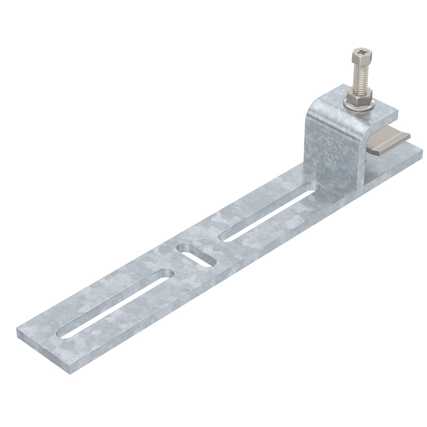 Descrição do produtoBeam clamp for mounting light components on horizontal steel beams. Suitable, for example, for mesh cable trays and cable trays to 300 mm width or clips. The direction of the cable support system attached to the beam clamp is horizontal.