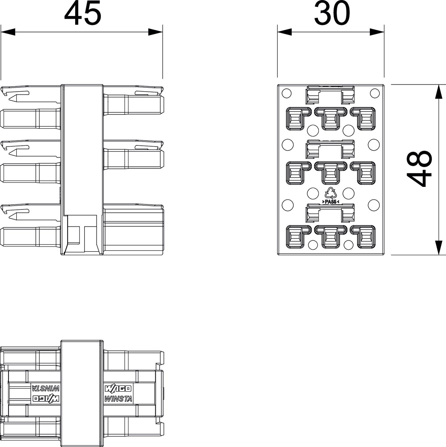 Descrição do produtoDistribuidor quíntuplo, 3 polos, tipo WINSTA® MIDI.